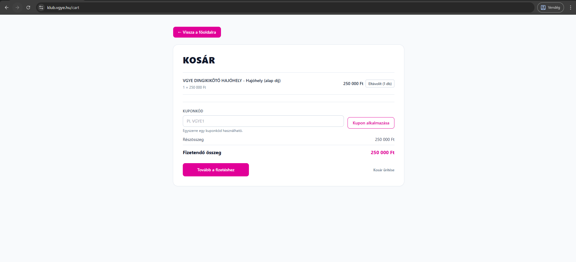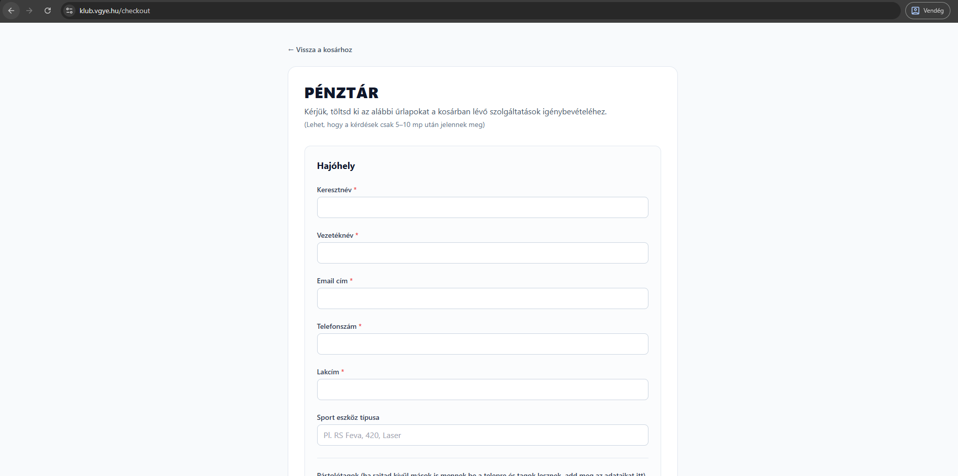 - Sikeres fizetés után a tagságod aktívvá válik, és továbbmehetsz a hajóhely vagy a versenyprogram oldalára.