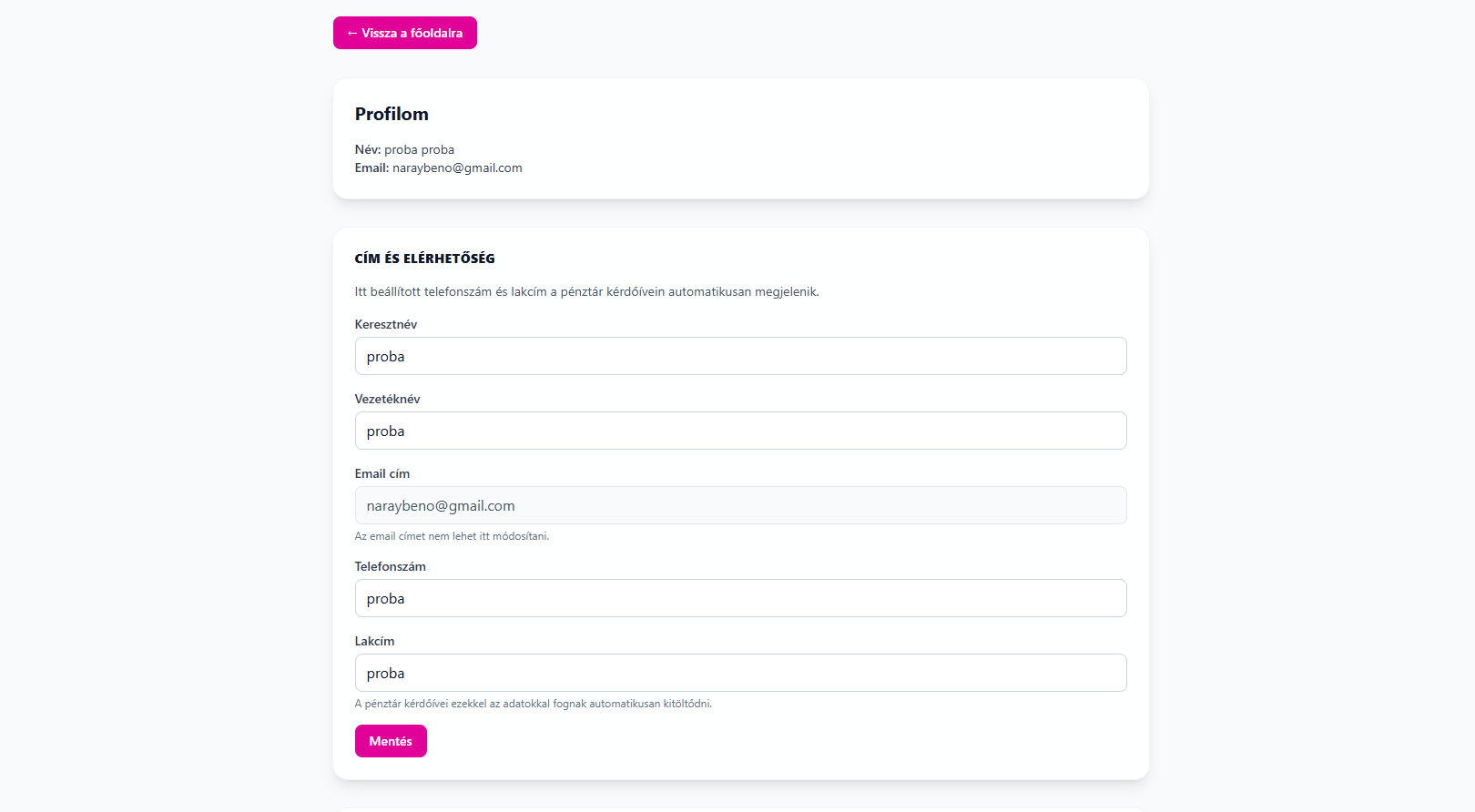 - A Módosítás / Mentés gombbal frissítheted az adataidat.