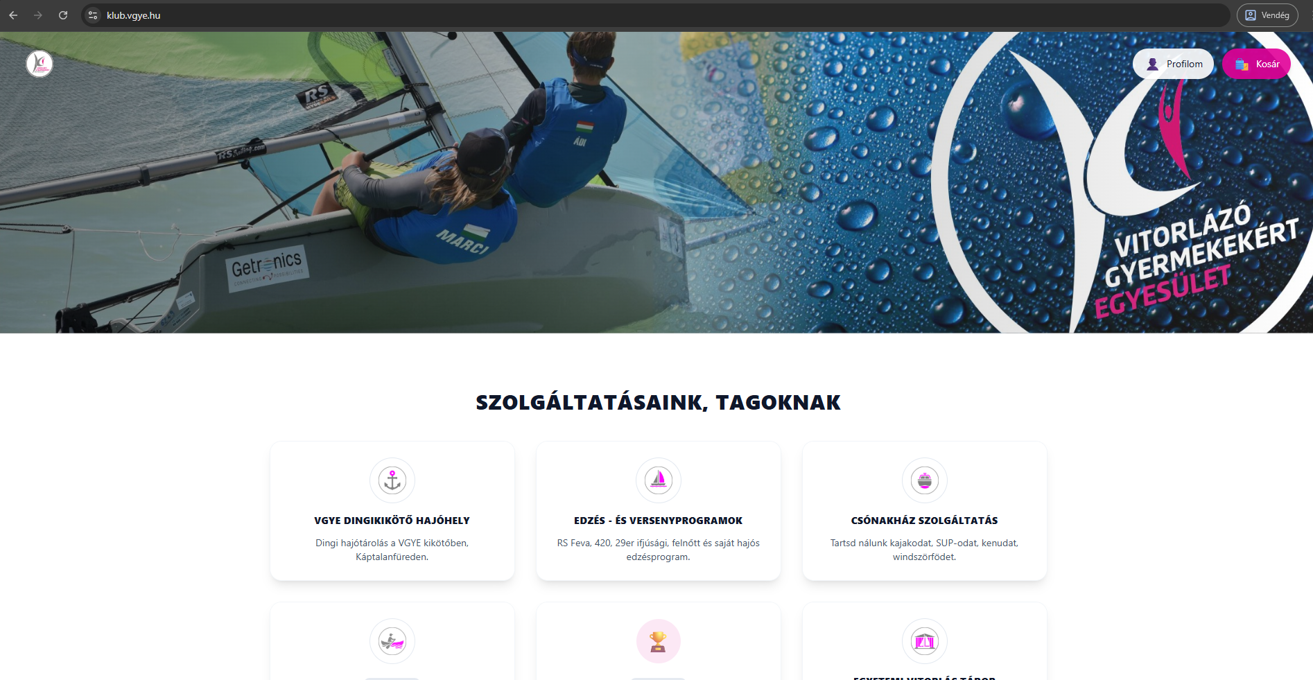 - Sikeres bejelentkezés után a rendszer a főoldalra vagy a kért oldalra (pl. hajóhely, versenyprogram) visz.