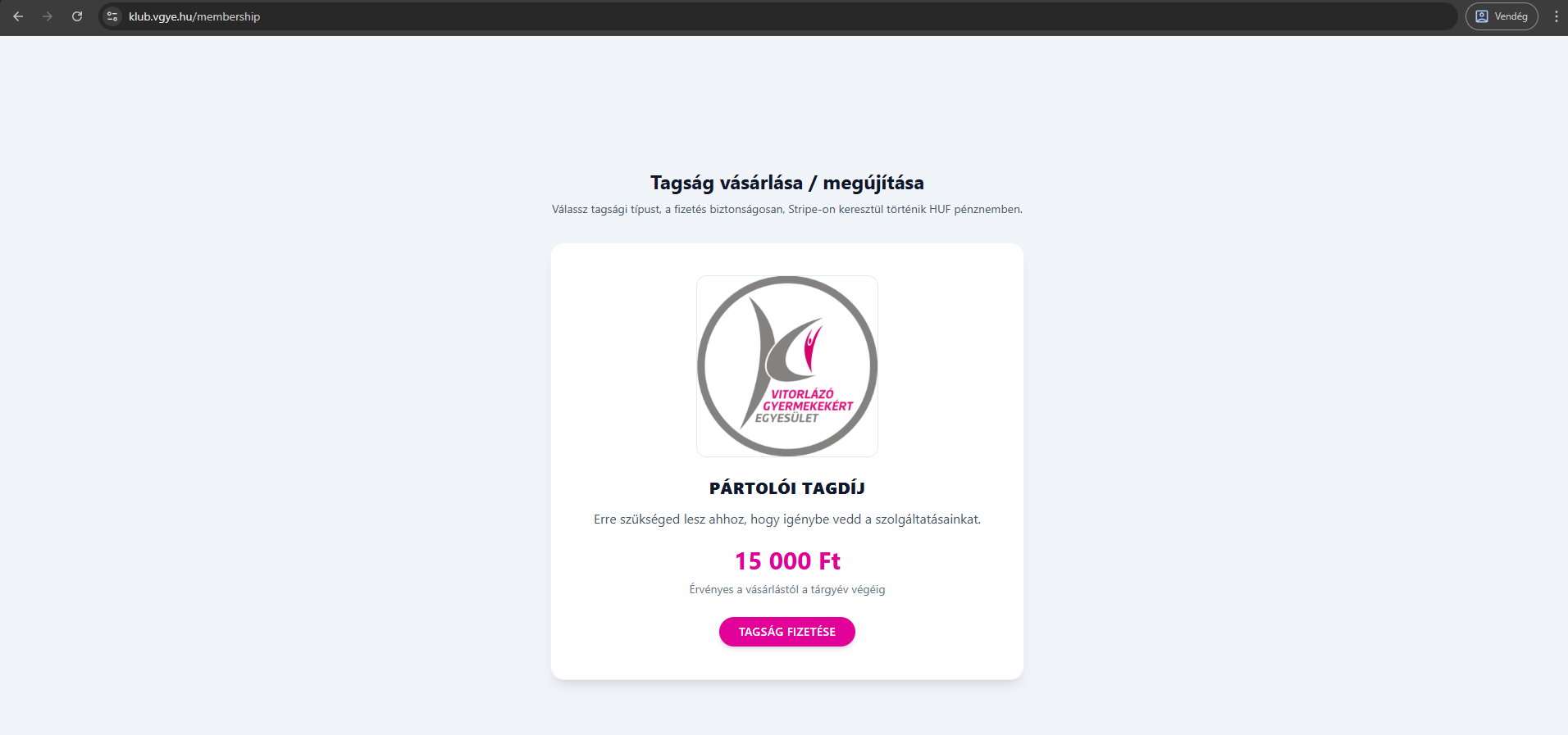 - Ha nincs aktív tagságod, előbb a tagság vásárlása szükséges.