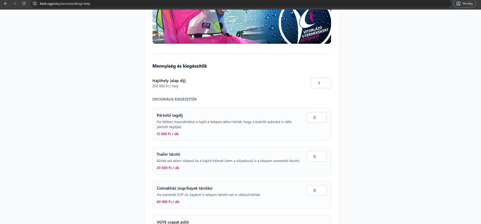 | 2 | Tagság vásárlása (/membership), ha a hajóhelyhez vagy versenyprogramhoz kell |